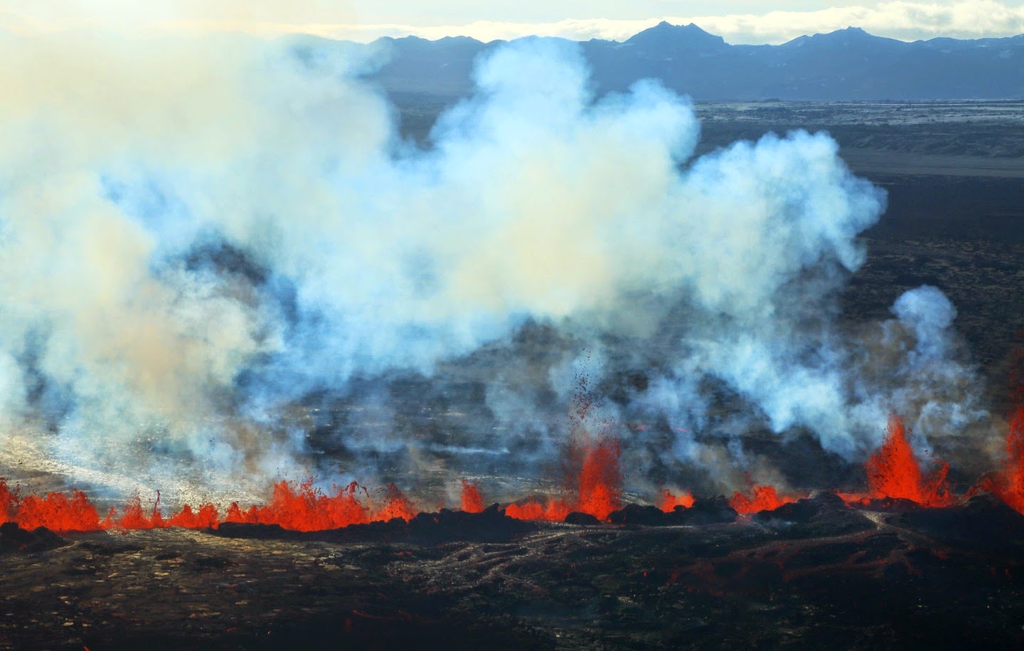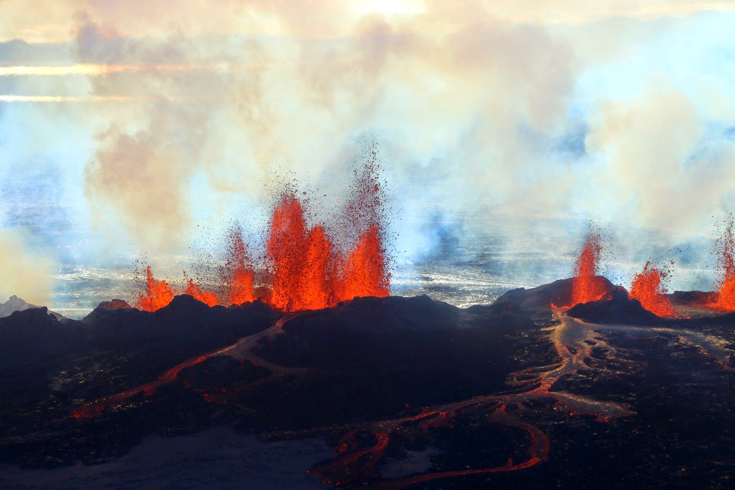 An aerial view of fountains of lava on the north side of the Bardarbunga volcano in Iceland on Sept. 2, 2014.