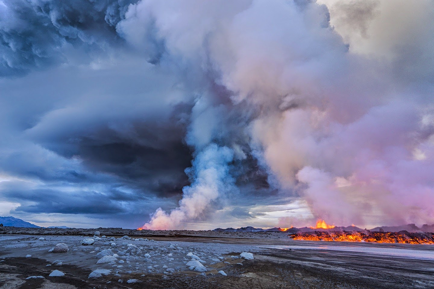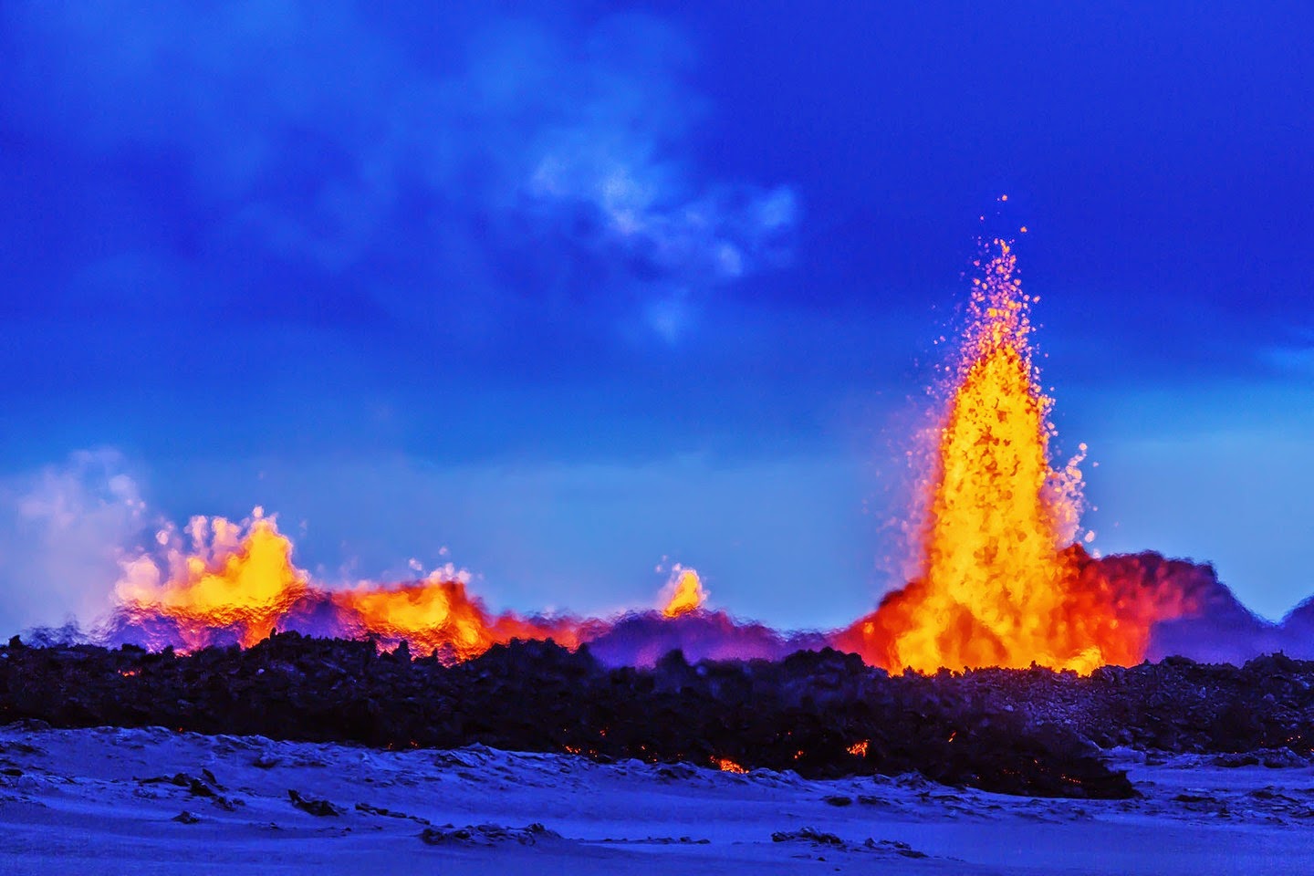 Iceland’s Barðarbunga volcano has been erupting since Aug. 29. With lava shooting out of the ground on the Holuhraun lava field about halfway between that volcano. And a neighboring volcano called Askja. The lava has flown out of the collapsed crater of Bardabunga. Known as a caldera, in a nearly 30 mile long dyke, before reaching the Earth’s surface.