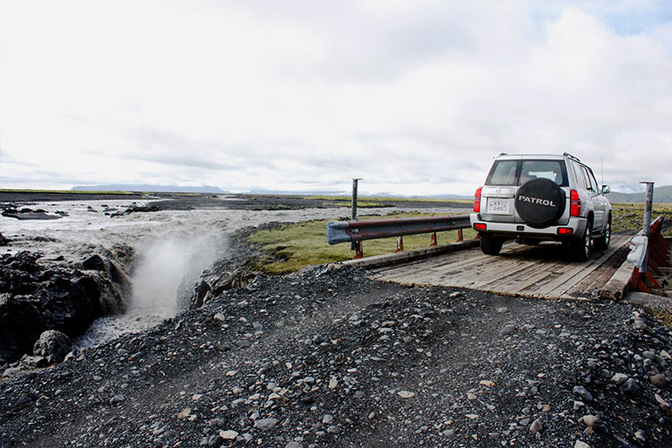 Another option is to go from road 1 to mountain road F88 via Herðubreiðarlindir to Drekagil. On this road ther are fords on the rivers Grafarlandsá and Lindá that need to be crossed. The fords can be difficult or even impassable for small jeeps.