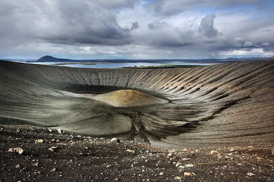 Hverfjall (or Hverfell according to some), is a volcano that appeared 2,500 years ago after the eruption of Krafla, located a little further east. A path leads to the top of the crater and the view from the top is stunning.