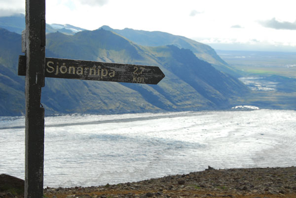 A paved path goes from Skaftafell Visitor Centre towards Skaftafell glacier. From the end of the paved section a gravel path leads to a point where there is a good view towards this impressive outlet glacier and its roots in Vatnajökull ice cap.