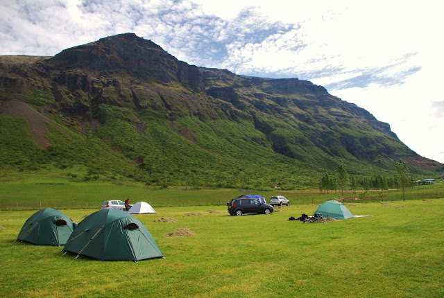 After enjoying the waterfall and its surroundings you should walk up the basalt column steps on the other side of the ravine and follow that path all the way down to the campsite via Lambhagi. When visibility is good It is recommended to do a little extra loop to the viewpoint at Sjónarnípa on the way down.