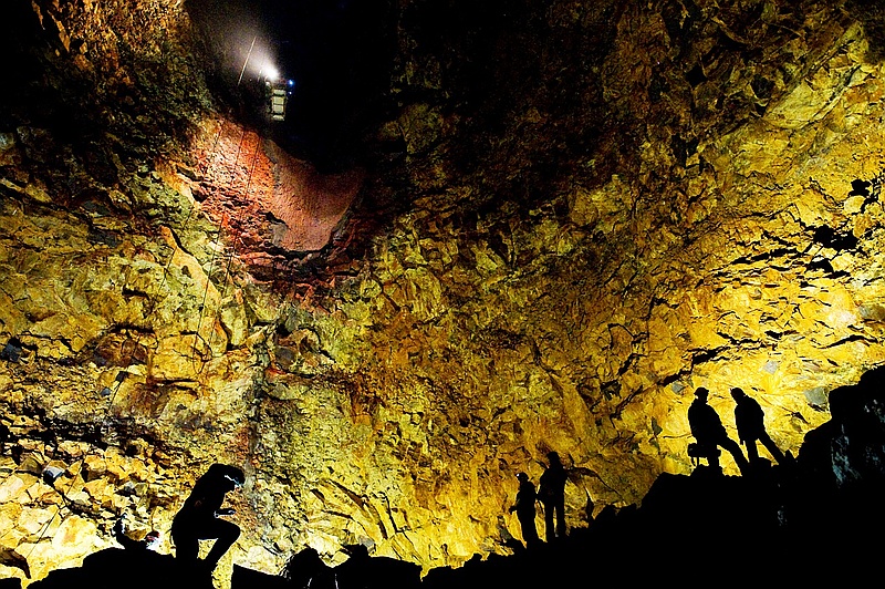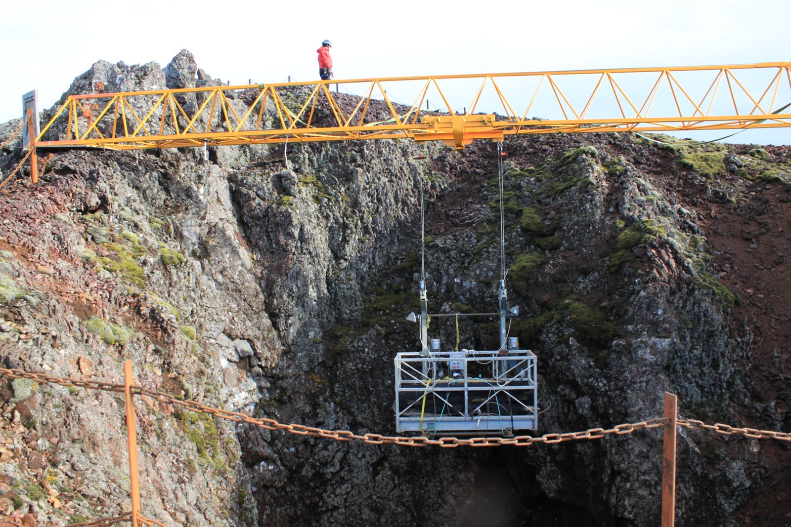 Lowered in a small skyscraper window washer’s pulley lift through a four metre wide hole, down, down, down nearly 150 metres (double the height of Hallgrímskirkja) onto a floor the size of a football pitch in a cavern 150,000 cubic metres by volume, which was once filled with pressurised molten lava waiting to explode upwards. Welcome to Þríhnúkagígur.