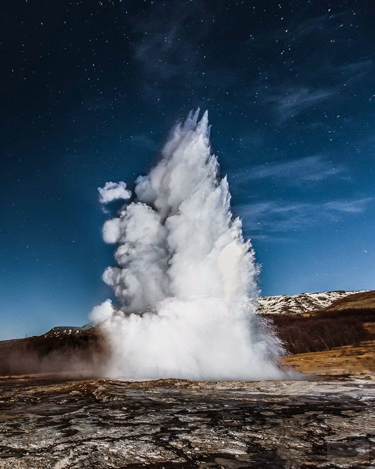 The English word geyser (a spouting hot spring) derives from Geysir. The name Geysir itself is derived from the Icelandic verb geysa, “to gush”, the verb from Old Norse. Geysir lies in the Haukadalur valley on the slopes of Laugarfjall hill, which is also the home to Strokkur geyser about 50 metres south.